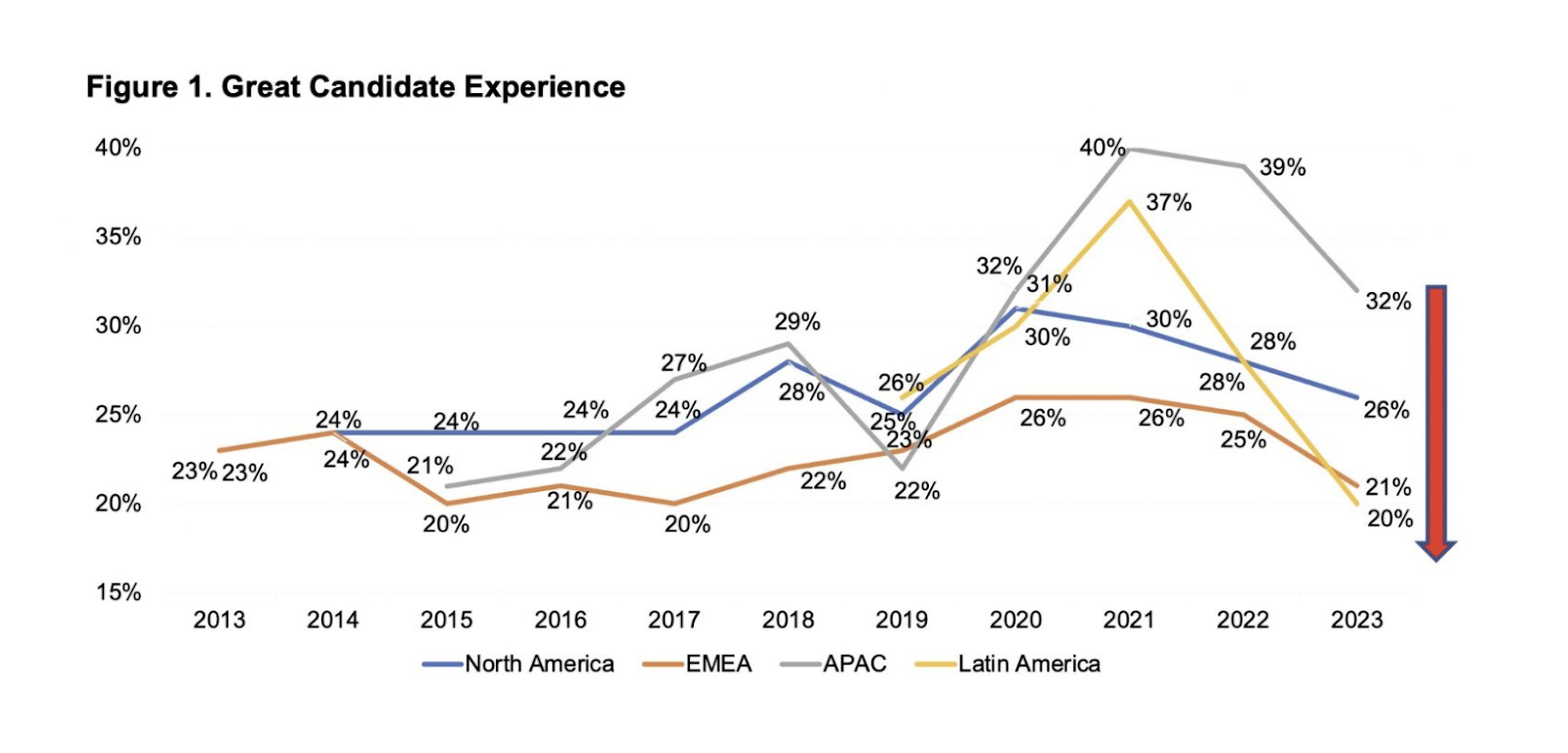 Плохой CX (candidate experience) не ограничивался рекрутерами, ищущими работу; казалось, что многие отрасли оказались перенасыщены кандидатами, и, следовательно, количество кандидатов на одну должность увеличилось. Больший объем и меньшее количество персонала неизбежно приводит к деградации CX.