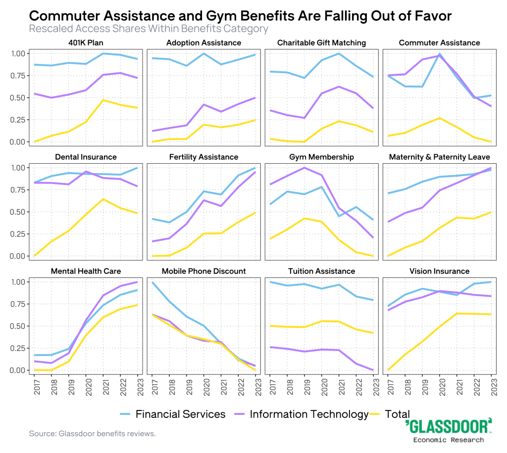 В 2023 году ситуация снова начала меняться. Компании – в первую очередь крупнейшие корпоративные титаны – сократили количество личных встреч в офисе, поскольку были убеждены, что удаленные работники менее продуктивны. Опрос сообществ на Glassdoor, проведенный в июне 2023 года, показал, что работники недовольны мандатом на возвращение в офис: 54 процента специалистов заявили, что их не устраивает политика гибридной работы в их компании. Кроме того, доступ к преимуществам работы на дому и удовлетворенность ими снизились в 2023 году для крупнейших компаний, но продолжают расти для малого и среднего бизнеса. Удаленных рабочих мест стало гораздо меньше, но они почти не исчезли. Они продолжают процветать в средних и малых компаниях.